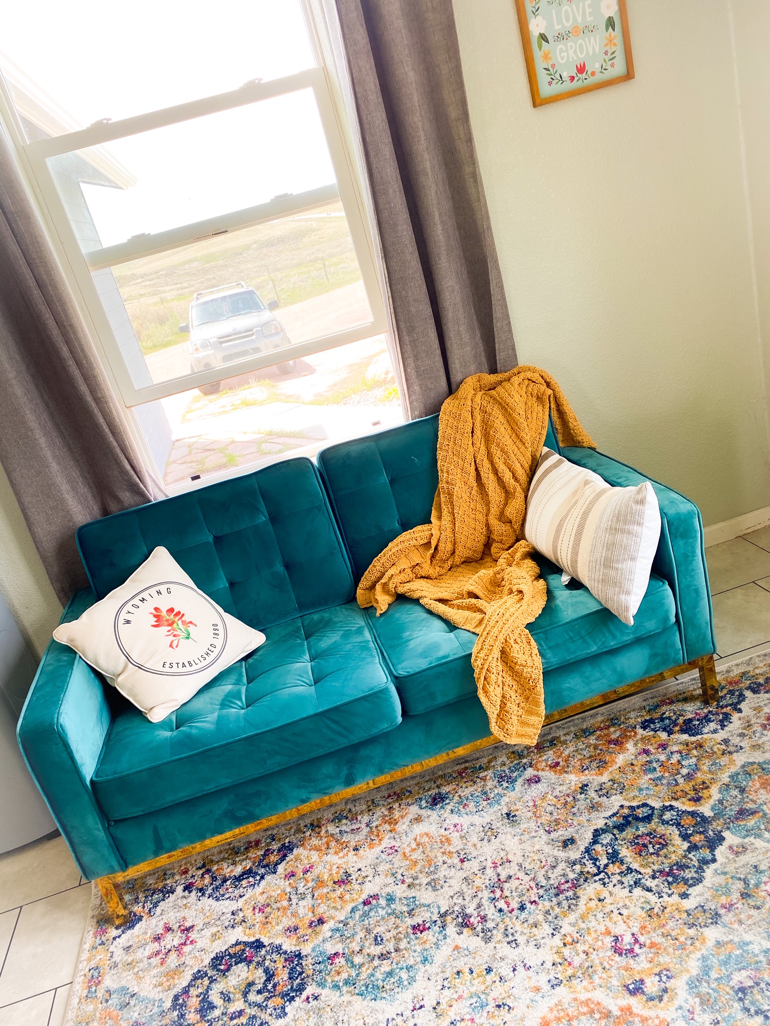 - Velvet Couch: The exact couch is no longer available but was purchased from Overstock.com where they have a plethora of other fun colors and styles of velvet couches for you to choose from.