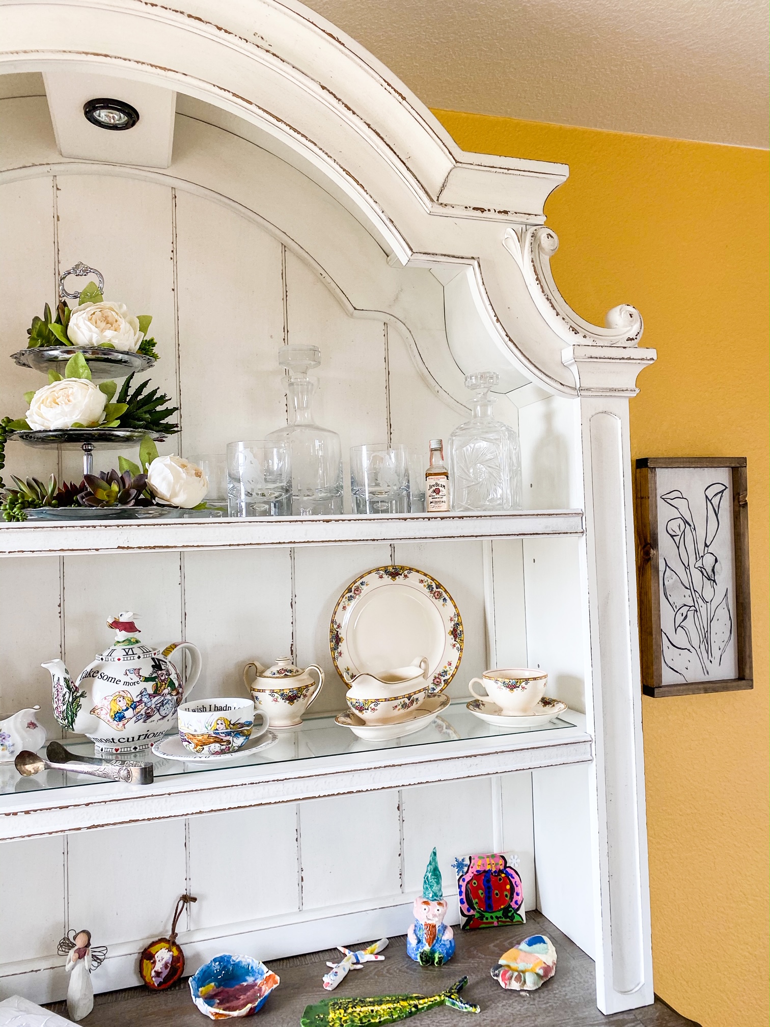 - Floral Paintings on either side of hutch: These were custom made by a local artist and designer from BRush 44 Designs.