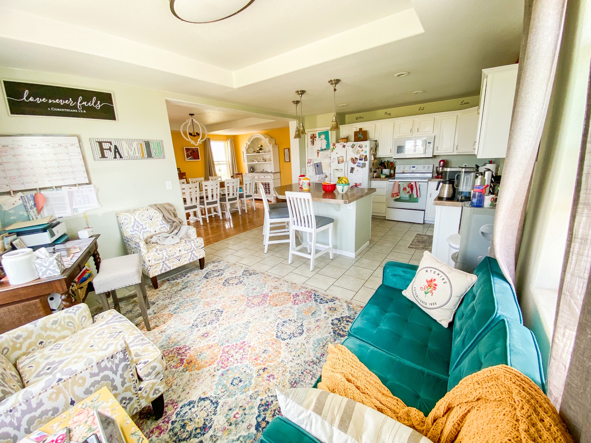 I love bright colors and patterns, but I also realize that our home has 5 kids and I want people to feel comfortable when they come here.